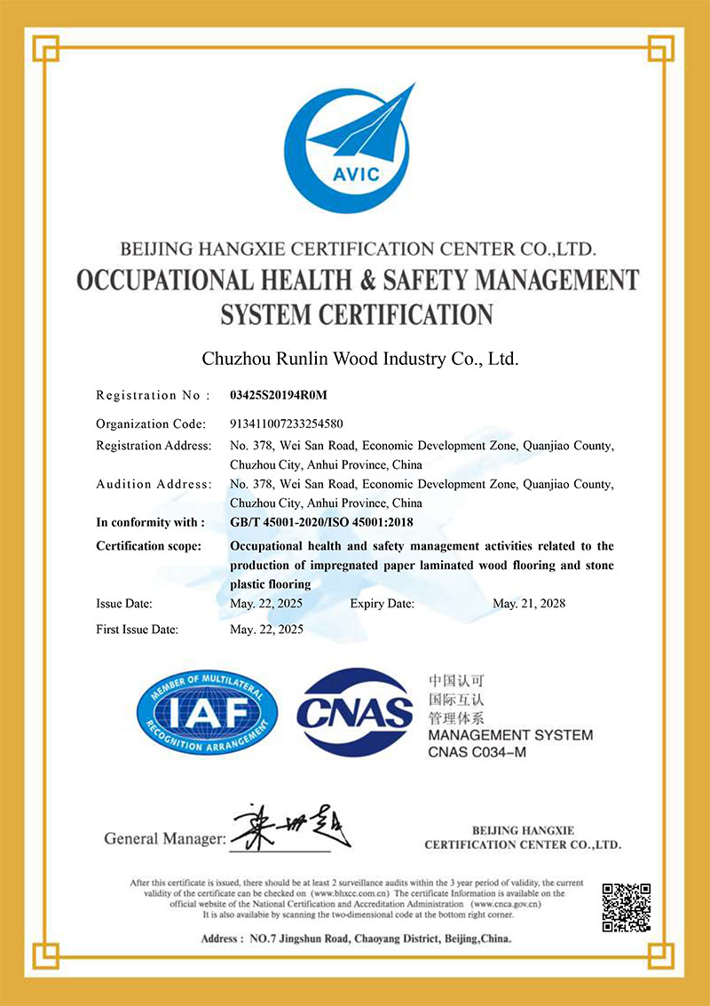 职业健康安全管理体系证书